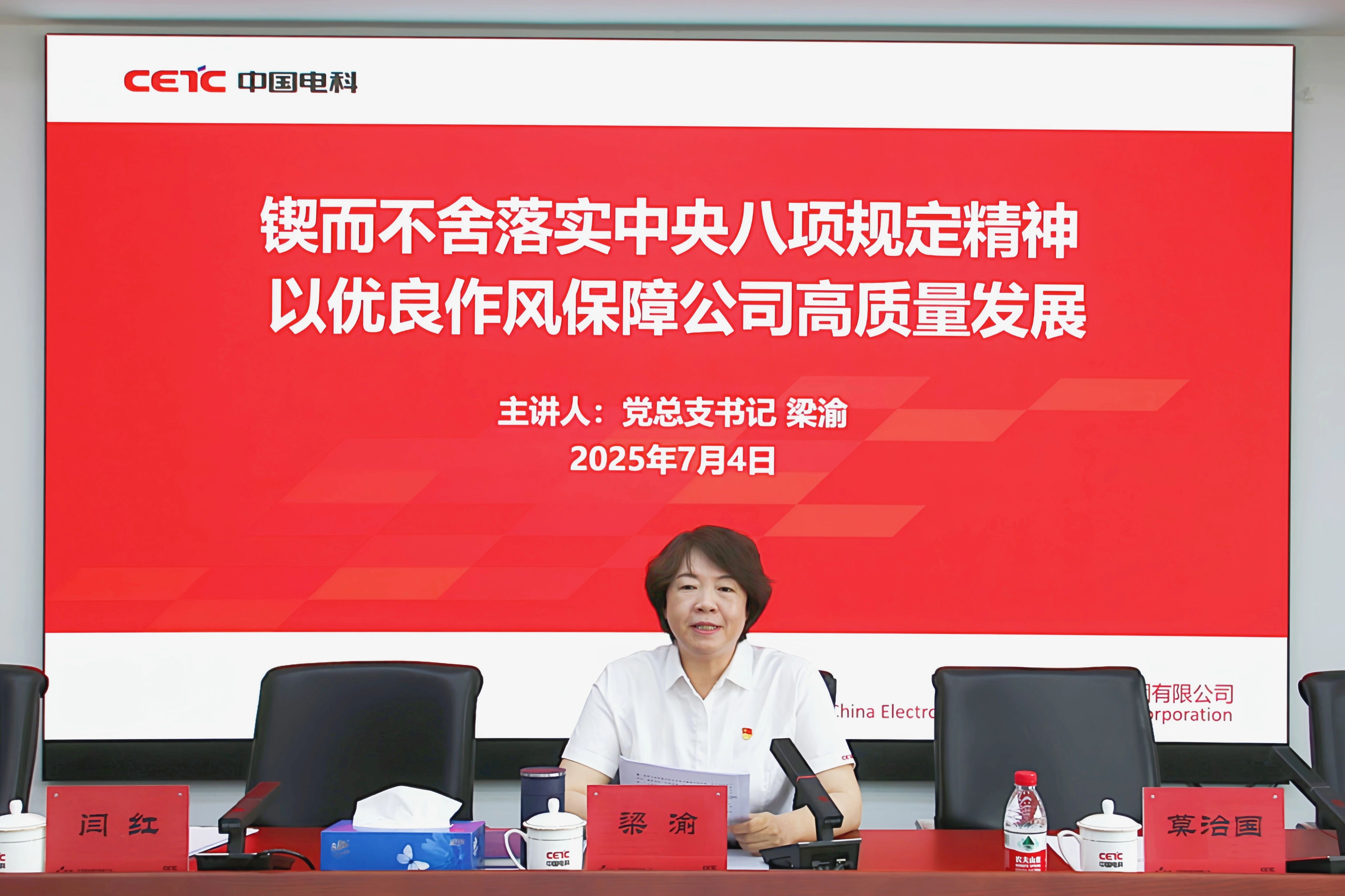 7月4日下午,首信股份召开党员大会,电科太极总经理助理、首信股份党总支书记梁渝讲授深入贯彻中央八项规定精神学习教育专题党课,引导公司各级党组织和全体党员干部弘扬党的优良传统,以作风建设新成效推动公司高质量发展开创新局面。公司党总支班子成员、中层及以上干部、全体党员及入党积极分子共50余人出席会议。党总支委员、总法律顾问、合规官闫红主持会议。