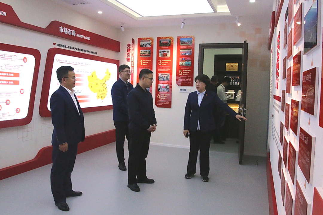 孙亭一行还参观了首信股份展厅、党建活动室、科技创新实验室等,全面且详细地了解了首信的发展历程、重要成果及业务特色。